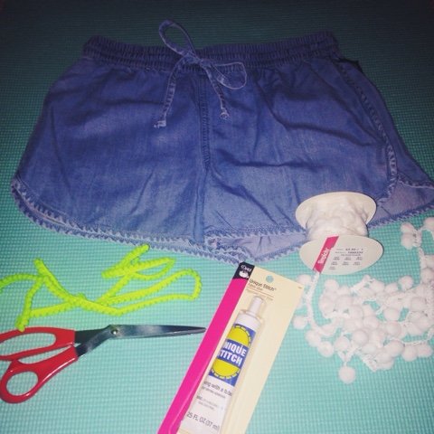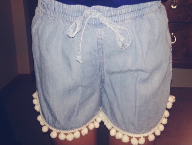 I’ve been searching everywhere for some cute pom pom shorts but haven’t been able to find them so I decided to make some of my own! The easiest DIY and honestly so cute.